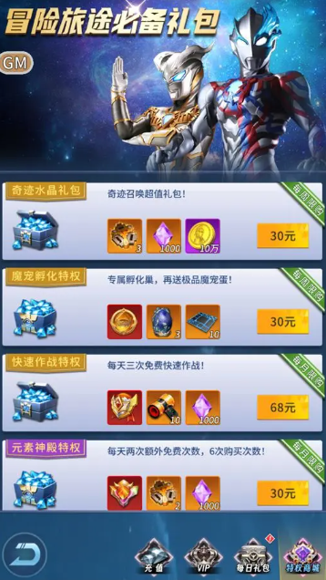 這都是平民必須考慮的,本人認為開服必須買的有:328元的超值時光禮包、68快速作戰禮包